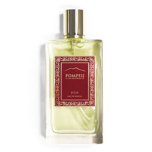 Julia è l’esempio di donna indipendente già 2000 anni or sono. Possedeva una grande villa a Pompei che occupava un intero isolato della città. Affittando i vari locali si affermò come donna d’affari e figura pubblica. La nostra essenza Julia, pensata per esaltare la forza e la sensualità dell’Essere Donna, è un mix di ingredienti preziosi, tra i quali: cumino, noce moscata, pepe, bergamotto, rosa, vetiver, legno di cedro e muschio.